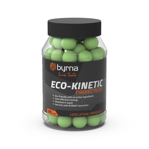 El Eco-Kinetic es uno de los proyectiles de entrenamiento soluble en agua. Permite que el área de práctica se puede limpiar fácilmente con agua. Los proyectiles Byrna Eco-Kinetic tienen una precisión de corta distancia y permiten un entrenamiento asequible. Distancia de entrenamiento precisa 16 pies (5 metros) Product Manual
